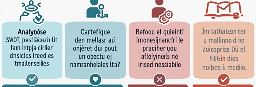 Une fois cette analyse SWOT réalisée, vous disposerez d’une base solide pour définir vos objectifs professionnels de manière réaliste et ambitieuse. Cette étape d’introspection est essentielle pour s’assurer que votre projet professionnel s’appuie sur vos véritables atouts et tient compte des réalités du marché.